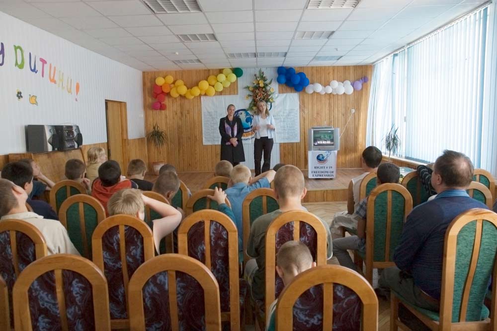 I løpet av det neste året vil omtrent 1500 barn som har forsvunnet eller har rømt hjemmefra i alderen fra 3 til 18 år, tilbringe opp til tre måneder på Kiev City barnehjem for unge og tenåringer. Det var en gruppe av disse unge menneskene som UFMRI (Unge for menneskerettigheter internasjonal) snakket til om viktigheten av menneskerettigheter.