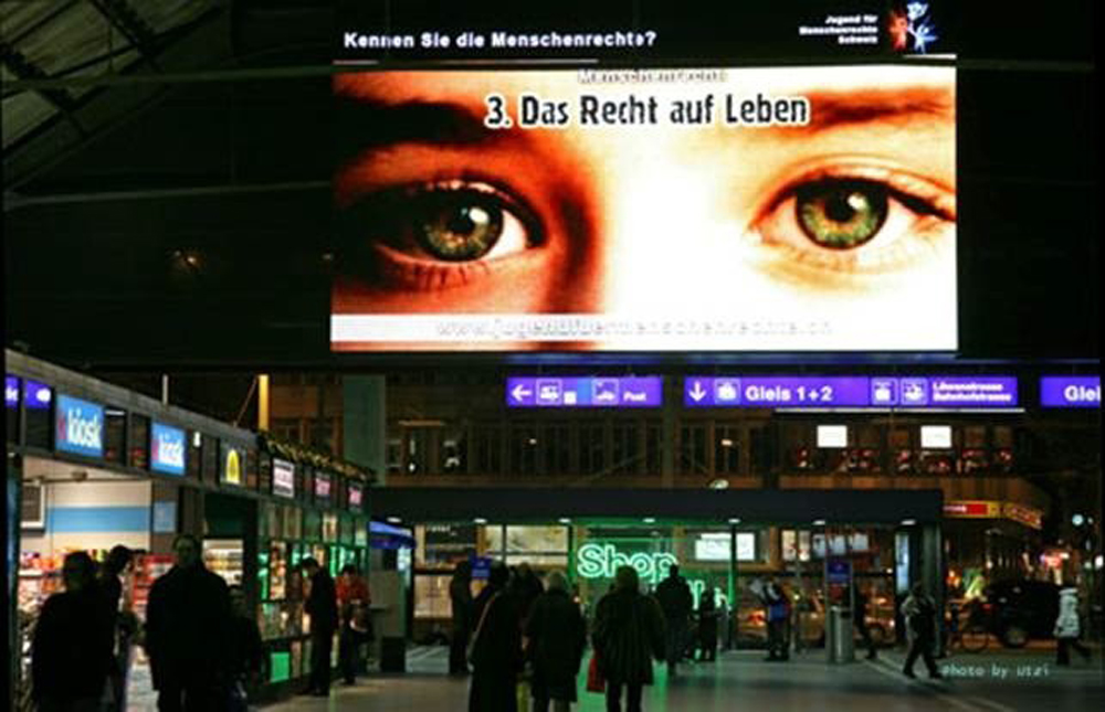 Каждый четыре минуты один из 30 роликов по правам человека из Всеобщей декларации прав человека ООН показывают на главных вокзалах Швейцарии в честь 60-й годовщины декларации. Ролики демонстрируются 1500 раз в день на больших экранах вокзалов Цюриха, Берна, Лозанны и Женевы, неся зрителям послание о правах человека.