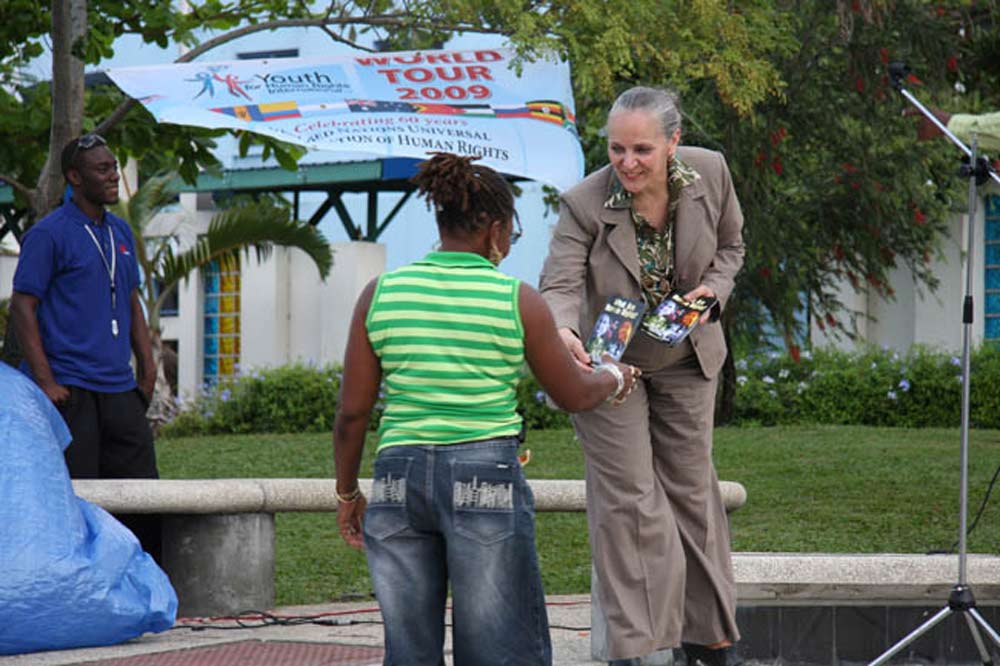 Många på ön Barbados är redan bekanta med Youth for Human Rights Internationals (YHRI) arbete som en följd av att de sett YHRI:s informerande annonser på nationell tv. YHRI:s avdelning i Barbados innebär nu att det åttiofjärde landet ansluter sig till YHRI. Pastor Michael Steele agerade värd för världsturnén 2009 och teamet hade en packad dagordning med möten med tjänstemän på hög nivå inplanerade förutom speciella evenemang för ungdomar.